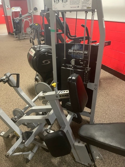 Magnum biangular seated row w/315 lb. stack. This is one of, if not the most sought after seated row on the market. The machine is built perfectly and will blast your back like no other. The super heavy 315 lb. stack gives even the biggest and strongest guys trouble. Unit is in excellent condition and perfect working order.